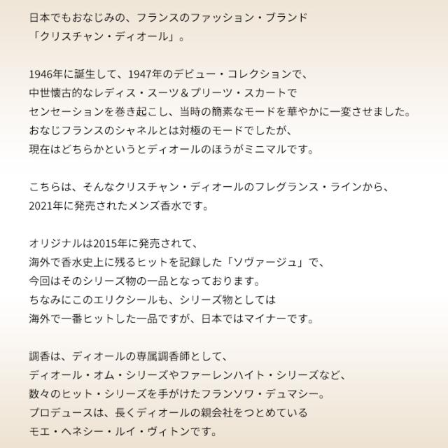 [商品名] ソヴァージュ エリクシール EDP・SP 60ml