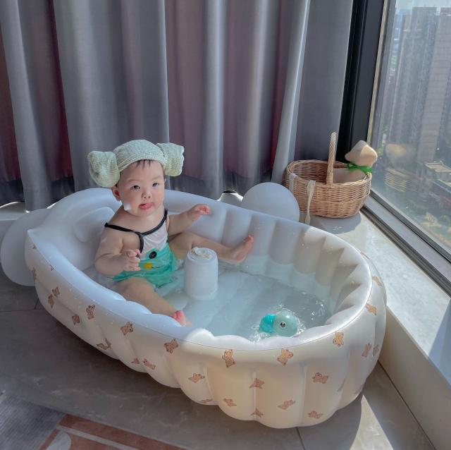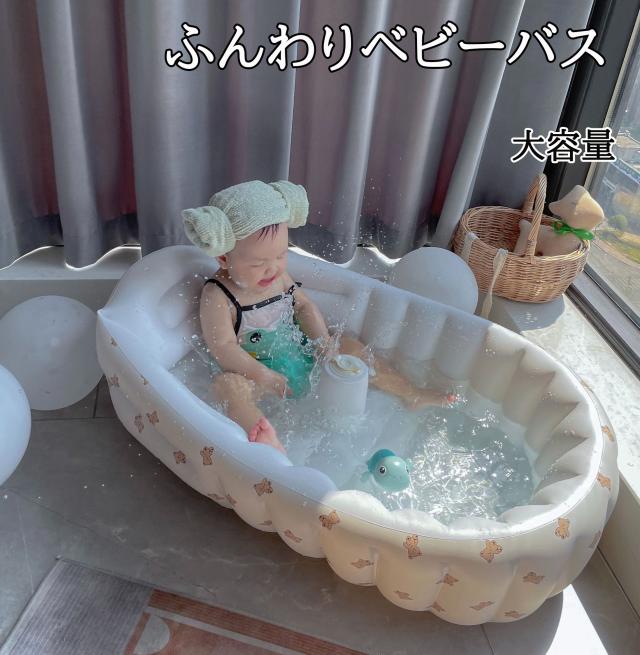 ふかふか ベビープール バス バスタブ 空気入れ 空気入れポンプ付 エアポンプ一体型プール ふんわりベビーバス ベビーバス 折り畳み プール