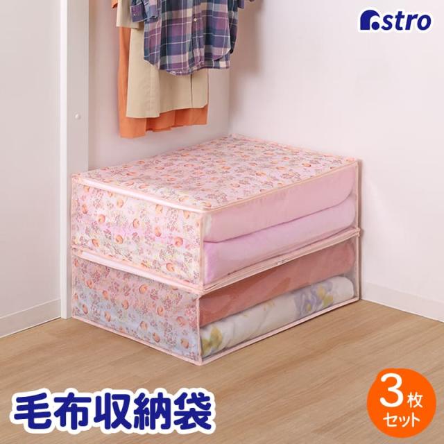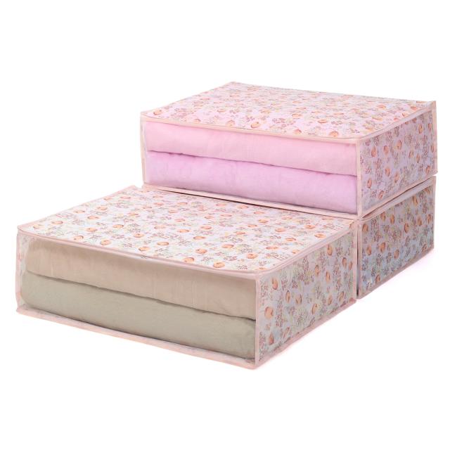 毛布収納ケース チューリップ柄 3個組 通気性の良い不織布製 収納袋 タオルケット 肌掛け布団 収納ボックス レトロ 花柄 アストロ 168-02