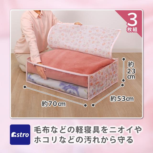 ●通気性が良くにおいがこもりにくい不織布製の毛布収納ケース。3個セット。