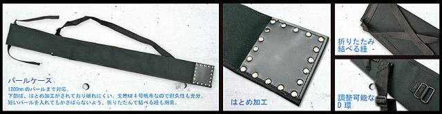 ◎商品説明:1200mmのバールまで対応。下部ははとめ加工されており破れにくい。生地は4号帆布なので耐久性も充分。短いバールを入れてもかさばらないよう折りたたんで結べる紐も用意