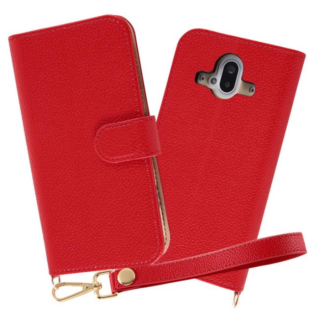 らくらくスマートフォン F 52B 手帳型ケース クリアポケット ハンドストラップ ルーペ付 レッド 透明 カード収納