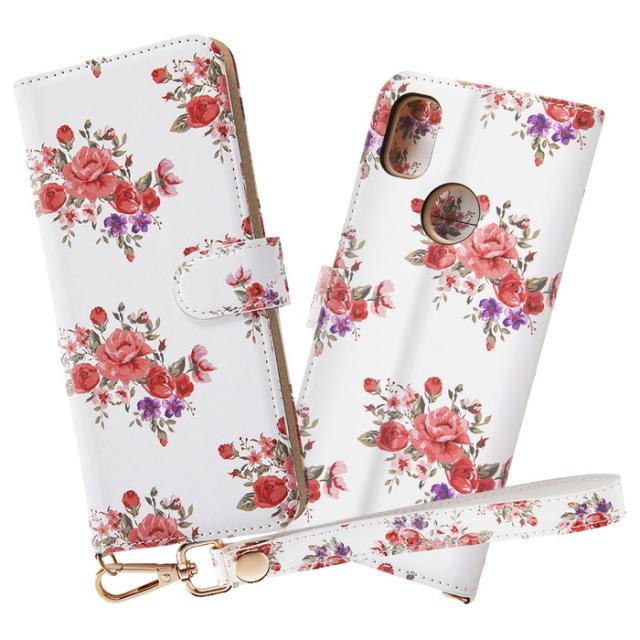 あんしんスマホ KY 51B 手帳型ケース クリアポケット ハンドストラップ ルーペ付 花柄 ピンク 透明 カード収納