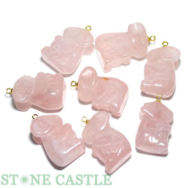 【天然石 チャーム】子(ねずみ) ローズクォーツ (8個セット) ★特価★