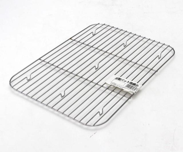 耐食性・耐摩耗性に優れたクロームメッキを使用した深型バット用の網です。油切りや水切りに活躍します。脚がついているので、作り置きやお弁当のおかずの粗熱を取ったり、手作りお菓子やパンのケーキクーラーとしてもお使いいただけます。