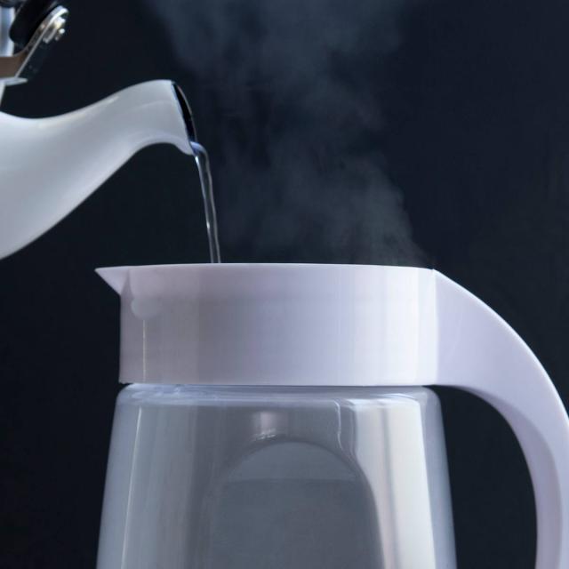 本体は軽くて丈夫な扱いやすいプラスチック製です。熱に強い素材を使用しているので、沸かしたてのお湯やお茶などを直接注ぐことができます。