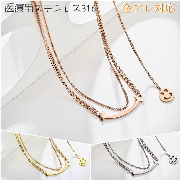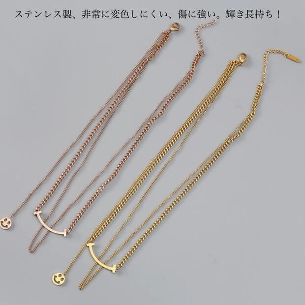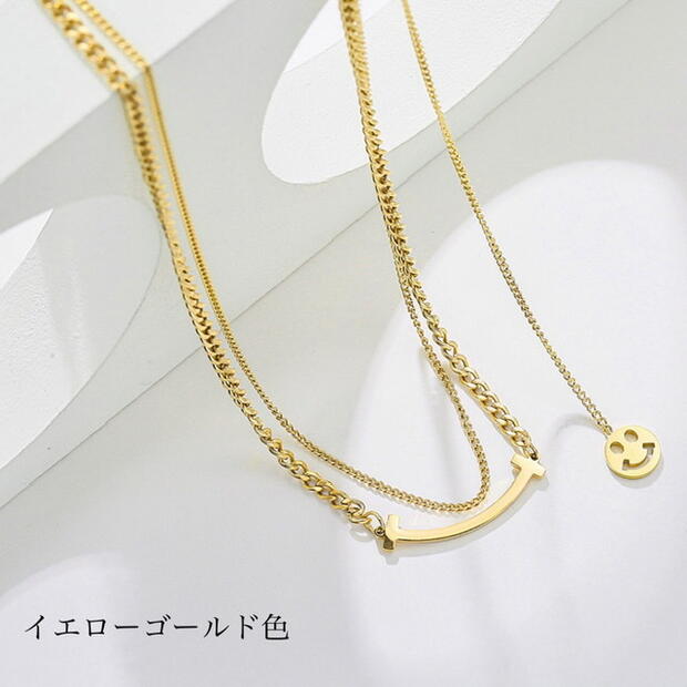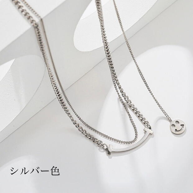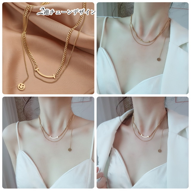 新作 お洒落なネックレス サージカルステンレス製 2連チェーンスマイルチョーカー ネックレス可愛い個性的なアイテム。