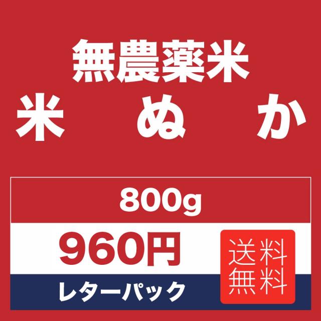 ぬか 800g 米ぬか 北海道産 無農薬米 糠 米糠 こめぬか レターパックで発送