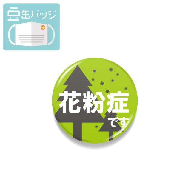 豆缶 マスクにつける缶バッジ 花粉症です ライトグリーン 22mm 表示 アピール アクセサリー かわいい 缶バッジ