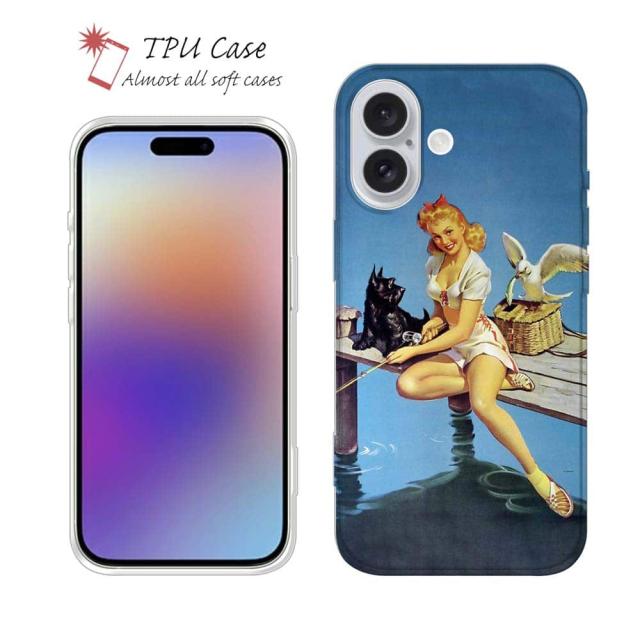 ソフトケース iPhone17 Pro Max iPhone Air クリアケース iPhone16e Pro Max iPhone15 Pro Max iPhone14 Plus iPhone13 mini Xperia 10 VII Galaxy AQUOS sense arrows Pixel10 Pro XL 釣り 魚 ルアー セット TPU 透明 釣りをする女性 ビンテージバージョン