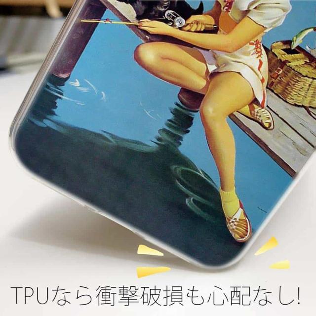 | 商品説明 | 落下や衝撃に強いTPUケース。ケースに直接プリントしてお届け。桟橋で釣りを楽しむ女性。愛犬との楽しいひとときに、思わず微笑む。なんとも美しいその姿の後ろでは、ビク(釣果カゴ)の中から魚を咥えて逃げようとするカモメ。。。ビンテージなイラストで、オシャレな貴方に持ってほしいデザイン。 |