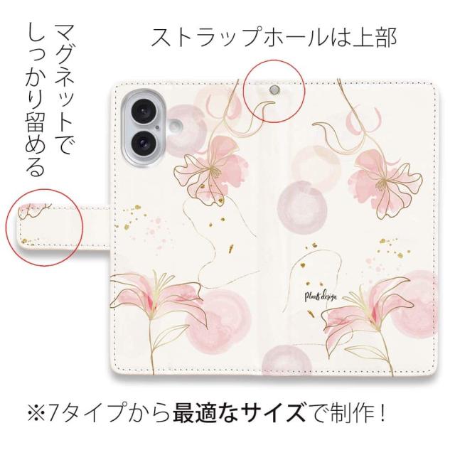 スマホケース 手帳型 カード収納 マグネット iPhone17 Pro Max iPhone Air iPhone16e iPhone16 Pro Max 16 Plus 15 Pro Max Xperia 10 VII Galaxy AQUOS ARROWS Pixel10 XL 花 花柄 プランツデザイン No.4