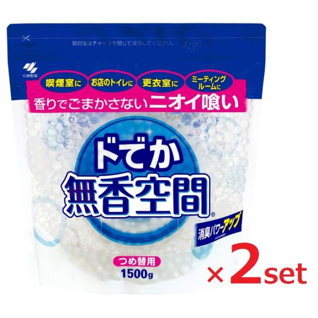 ドでか 無香空間 無香料 つめ替用 1500g ×2セット 消臭剤 詰め替え 部屋のニオイ 介護空間 喫煙室 ミーティングルーム 会議室 トイレ 更衣室 ペット 悪臭 臭い 室内 無香 おすすめ 人気 小林製 2袋セット
