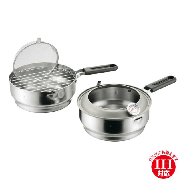 | セット内容 | 鍋×2、油飛びガード、油こし網(油はねガード兼用)、油切り網、温度計 |