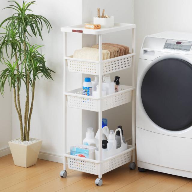 ランドリーなどの水回りでも安心して使えるポリプロピレン製です。タオルを置いたりシャンプーや洗剤などのボトルを収納してもOK。コンパクトなのでお部屋のちょっとしたスペースに置くことができます。