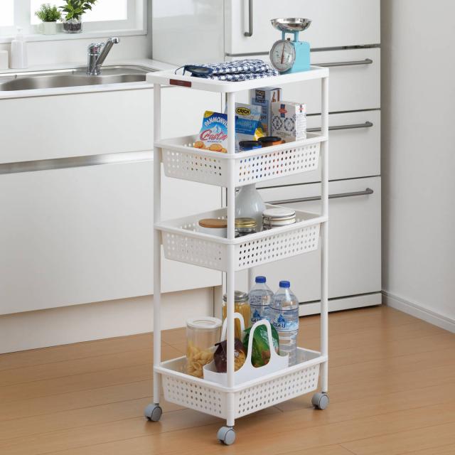 キッチンワゴン 4段 キャスター付き 幅32.5cm カーゴ2 ワイド ( キッチン収納 隙間収納 マルチワゴン キッチンラック ワイドワゴン ランドリー収納 バスケットワゴン ワゴン収納 カーゴ 幅 32..5cm サンカ )