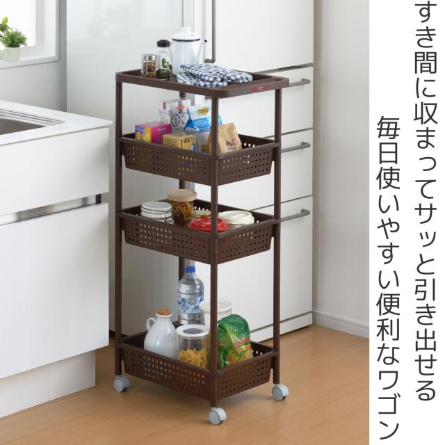 《 LH8580 キッチン ワゴン 白 茶 ホワイト ブラウン すき間 収納 すきま 隙間 スキマ バスケット型ワゴン ワゴンテーブル かご カゴ バスケット メッシュかご 野菜ストッカー ストッカー ストック 野菜収納 食品収納 食器収納 小物収納 マルチ収納 収納用品 洗面所収納 脱衣所収納 サニタリー収納 台所 洗面所 脱衣所 無地 シンプル シック ナチュラル おすすめ オススメ 便利 役立つ 簡単組立 簡単組み立て 簡単組立て 組立簡単 組み立て簡単 組立て簡単 幅32..5 奥行48cm 高さ101cm 四段 》