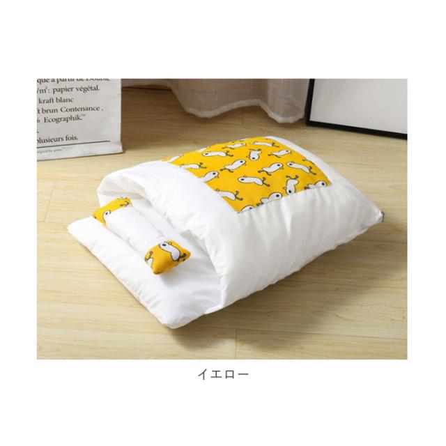 | 商品説明 | ・すっぽりもぐりこめば、ふかふか快適リラックス!ネコちゃん・ワンちゃん用のあったかお布団が新登場。 ・ネコちゃんの体を優しく包み込む、掛け布団・敷き布団が一体になった寝袋スタイルなので、冬の寒さが苦手なネコちゃんもポカポカと快適。 ・飼い主さんの腕でアゴ枕をするのが大好きなネコちゃんにぴったり!可愛いらしいミニ枕が付属。 ・お布団足元部分のファスナーから詰め物を取り出せば、こまめにお洗濯ができて、お手入れも楽ちん。 ・厚みのあるふかふか素材だから、中にもぐってお布団としてはもちろん、ちょこんと上に乗ってペット用クッションにしてもOK! ・ネコちゃんだけでなく、小型のワンちゃんやフェレットなどの小動物用のお布団にも最適。(※体重約10kgまでのネコちゃん、7.5kg程度までの小型のワンちゃんの使用に適しています。) |