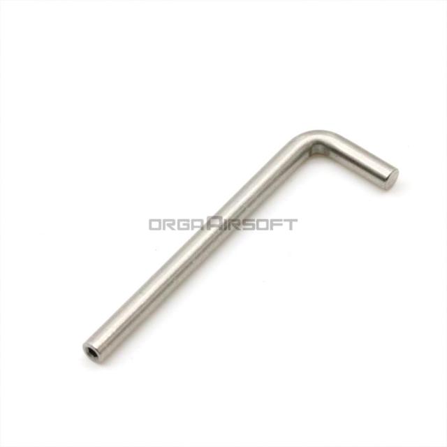 ノズルの先端から差し込み左右に回してフローバルブの位置を調整し、初速側とブローバック側のガス流量を変更できます。