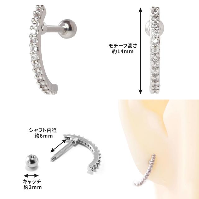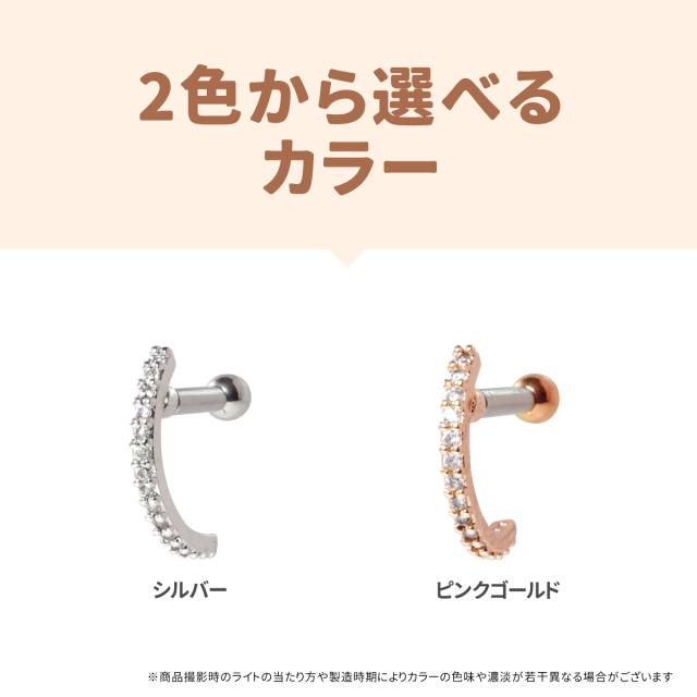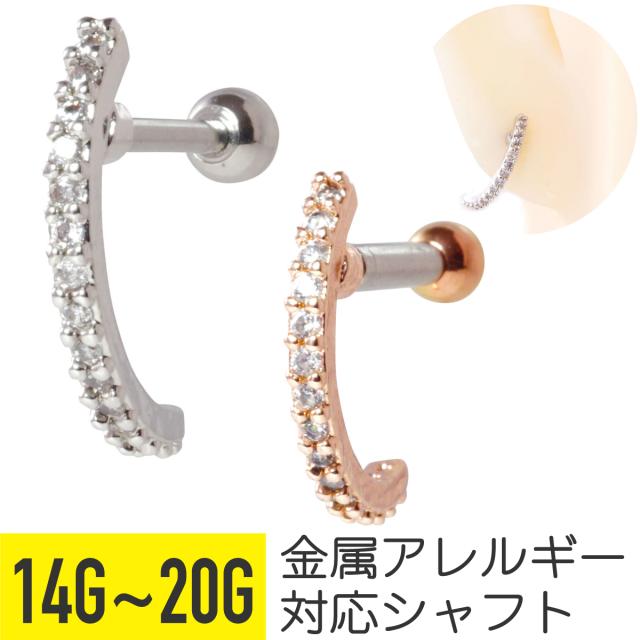 カーブ イヤーカフ風 ジュエル ストレートバーベル 14G 16G 18G 20G サージカルステンレス ジルコニア ジュエル シルバー ピンクゴールド イヤーロブ ヘリックス 軟骨ピアス ボディピアス CZ イヤーカフ