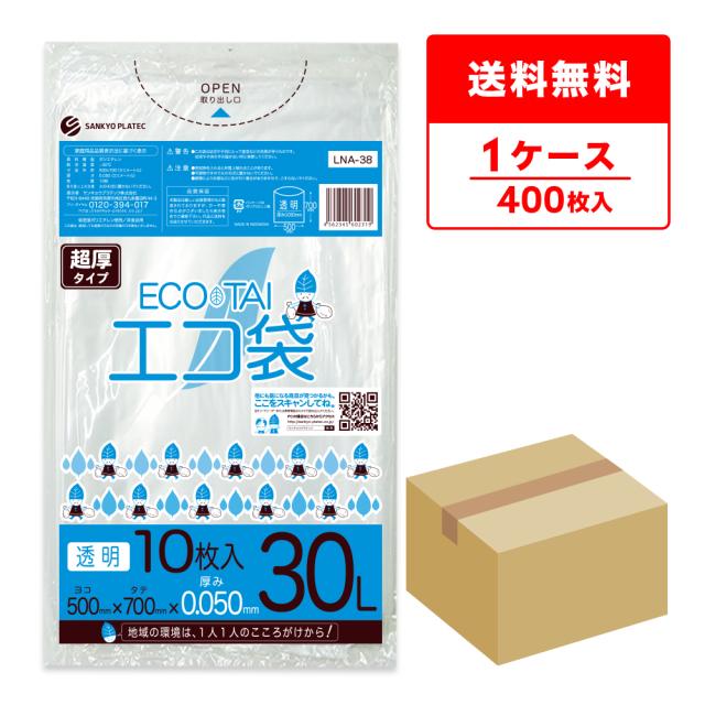LNA-38 ポリ袋 30リットル 0.050mm厚 透明 超厚タイプ 10枚x40冊 /ゴミ袋 ごみ袋 送料無料