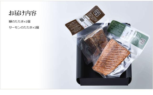 ○内容量:鰤のたたき×1個、サーモンのたたき×1個(計約300g)