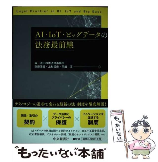 商品名:【中古】 AI・IoT・ビッグデータの法務最前線 ,IoT and Big Data / 齋藤浩貴 上村哲史 岡田淳 / 中央経済社 [単行本]【メール便送料無料】