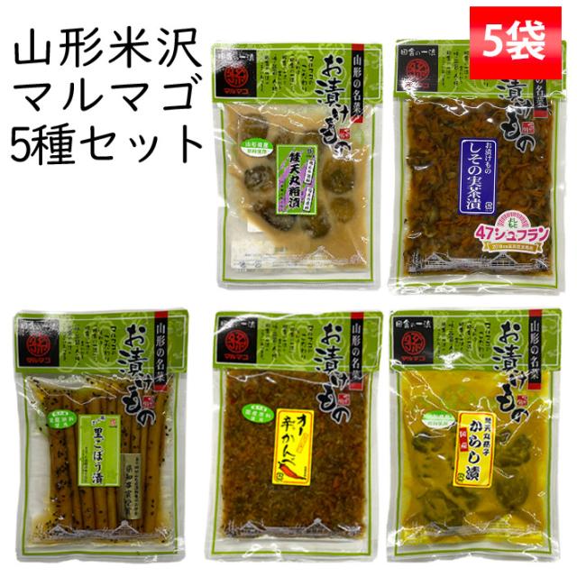 漬物 セット マルマゴ 5種セット 梵天丸からし漬、梵天丸粕漬、オー辛かんべ、しその実茶漬、里ごぼう漬け ネコポス 送料無料 山形県米沢市 内藤醸造