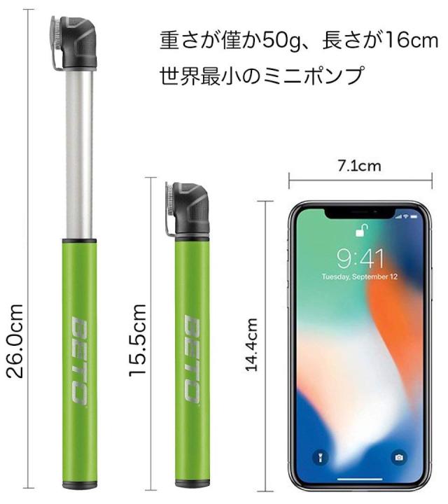 自転車 空気入れ 携帯用 ポンプ 仏式 BETO 世界最小 仏式バルブ対応 携帯用ポンプ グリーン 台湾製 お得 高品質 120psi PVP-003Abg
