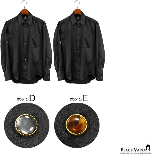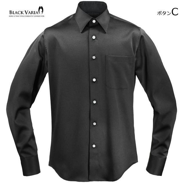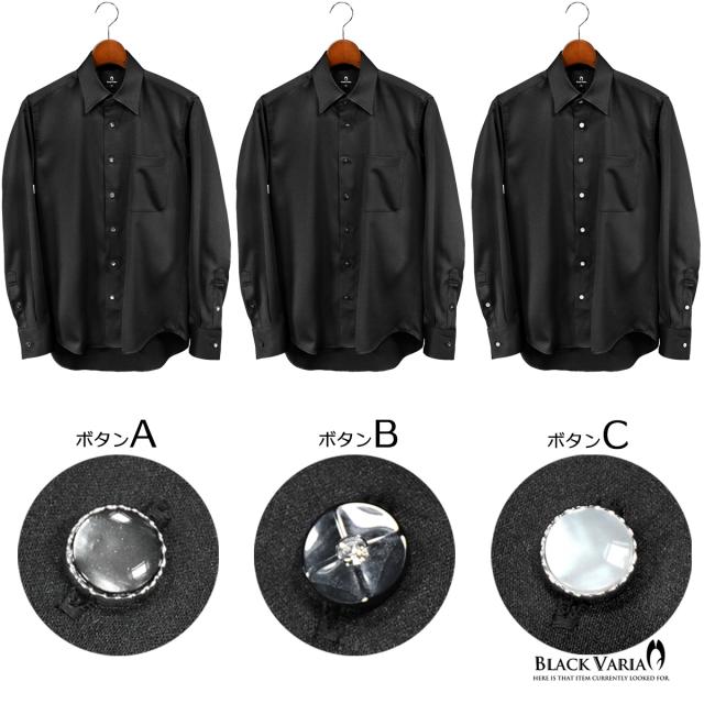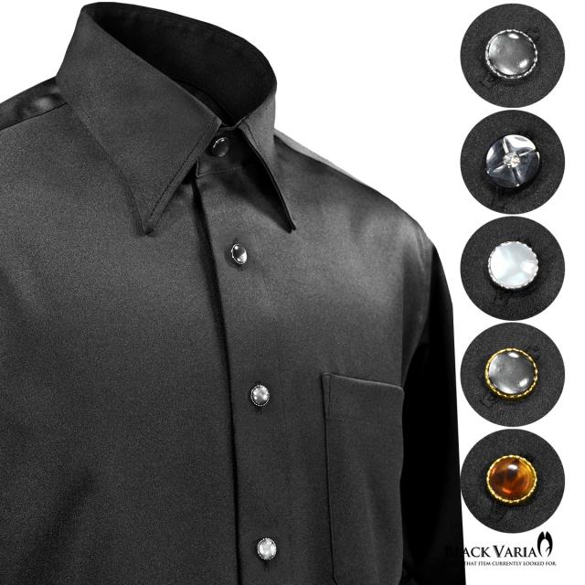 サテンシャツ ラインストーンボタン ドレスシャツ パウダーサテン レギュラーカラー パーティー メンズ ブラック 黒 mens 21170