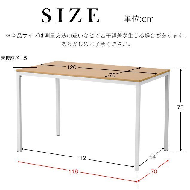 テーブルサイズ:幅120×奥行70×高さ75cm 天板厚み:1.5cm