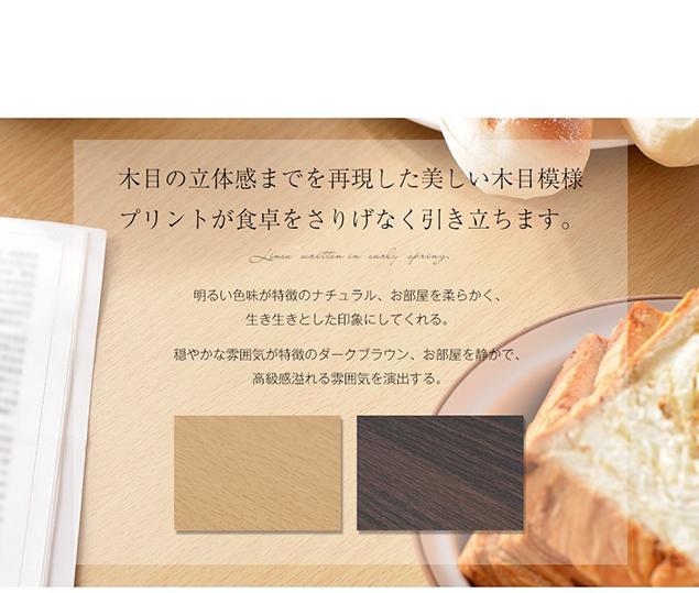 【木目の立体感までを再現した美しい木目模様天板】なめらかな手触り天板は高級感といい肌触りが兼ね備える上、水や汚れに強く、耐久性も優れて、お手入れも簡単です。汚れた時もサッと簡単に拭けます。