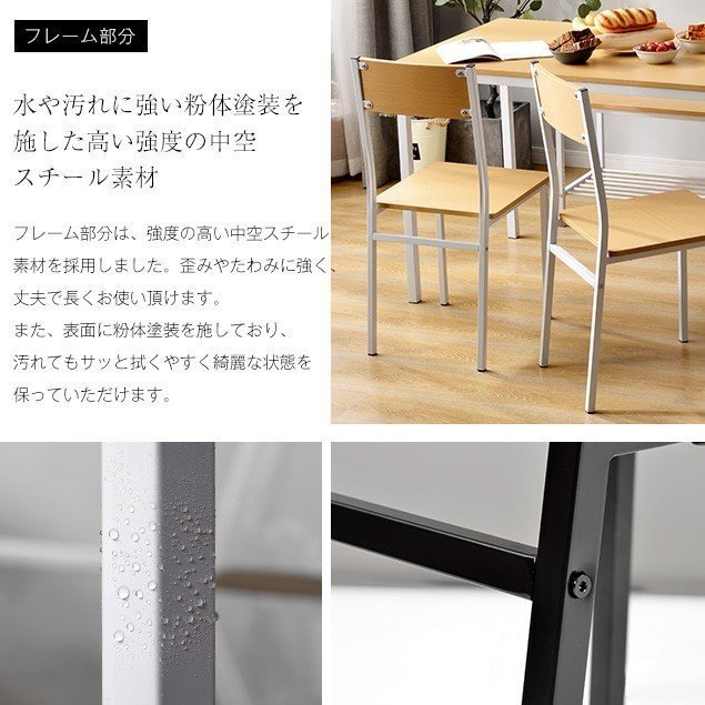 【水や汚れ、摩擦に強い粉体塗装スチール素材】テーブルの要である支柱は、安定感抜群で頑丈なパイプを使用。揺れたりせずに安心してご使用いただけます。粉体塗装を施したから、クリーンは簡単、きれいな状態を保っていただけます。