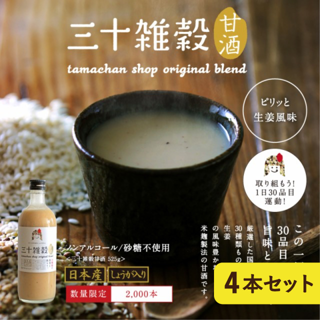 三十雑穀甘酒525g 4本セット 送料無料 タマチャンの三十雑穀を使った贅沢な甘酒 そのままでも温めても美味しい 冬の栄養ドリンク 黒と発芽の三十雑穀甘酒 しょうが あま酒 あまざけ ノンアルコール 健康