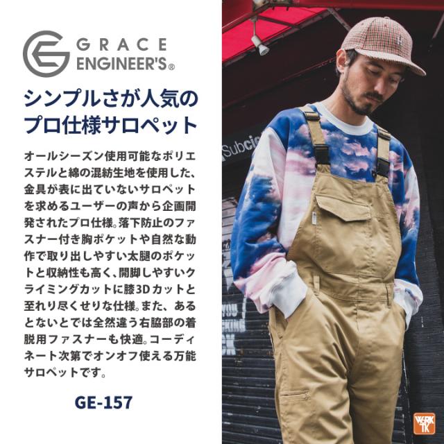 グレースエンジニア サロペット オーバーオール つなぎ 春夏 秋冬 作業服 作業着 おしゃれ カジュアル シンプル 酪農 農業 畑仕事 ガーデニング 整備士 板金 塗装 アウトドア メンズ レディース SS S M L LL エスケープロダクト sk-ge157
