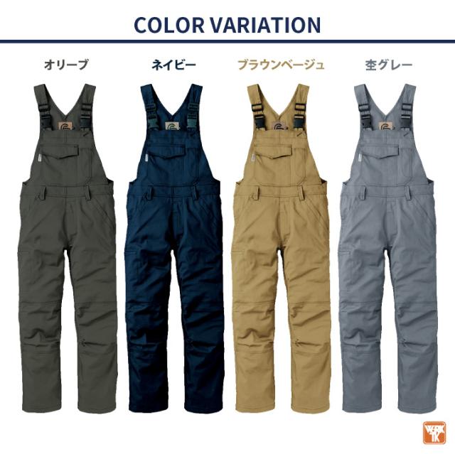 オールシーズン使用可能なポリエステルと綿の混紡生地を使用した、金具が表に出ていないサロペットを求めるユーザーの声から企画開発されたプロ仕様。