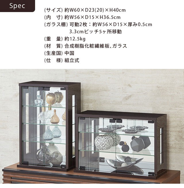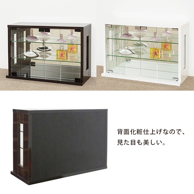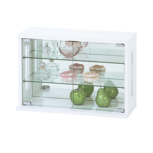 卓上 コレクションケース 横型 幅60 高さ40 背面ミラー ガラス棚 コレクションラック フィギュアケース ディスプレイラック 棚 ガラスケース シンプル 白 ホワイト おしゃれ(代引不可)【送料無料】