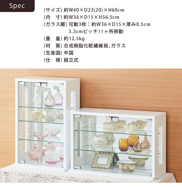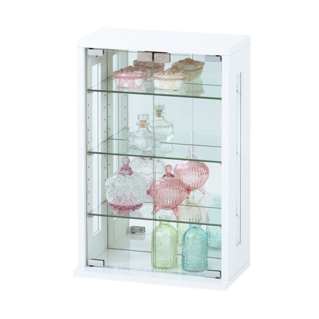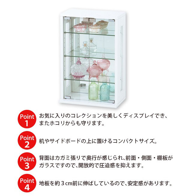卓上 コレクションケース 縦型 幅40 高さ60 背面ミラー ガラス棚 コレクションラック フィギュアケース ディスプレイラック 棚 ガラスケース シンプル 白 ホワイト おしゃれ(代引不可)【送料無料】