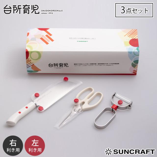 サンクラフト 台所育児 スターターセット 3点 右利き用 DIG-301 左利き用 DIG-302【子供包丁/こども包丁/子ども用包丁/キッズ 包丁 キッチンバサミ ピーラー 調理器具 セット/日本製】