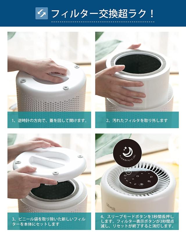交換用フィルター Levoit 空気清浄機 core200s 花粉 花粉対策 除菌 ほこり 脱臭 タバコ ペット臭 カビ取り PM2.5対応 静電HEPA
