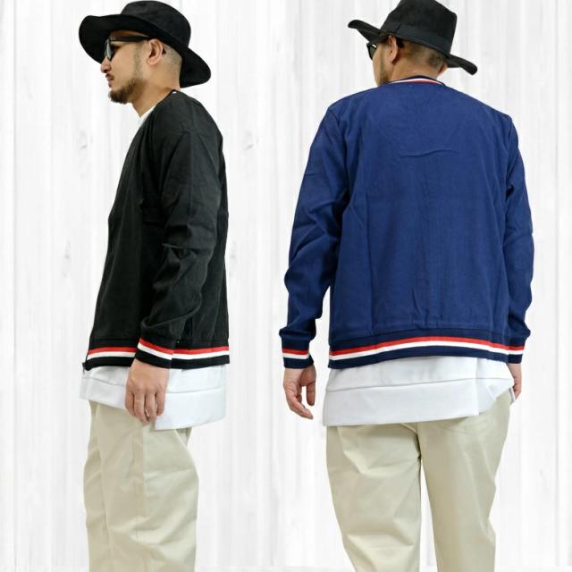 ブラック・ネイビーのカラー展開で、無地なので合わせやすく使い勝手のいいアウターです!