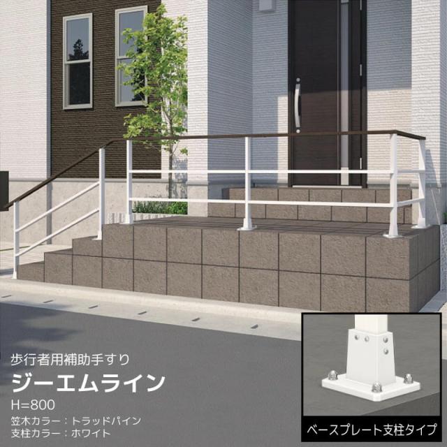 階段手すり 玄関手すり 手すり 手摺 手摺り 屋外 玄関アプローチ ジーエムライン 4スパンセット 木調笠木 ベースプレート支柱タイプ