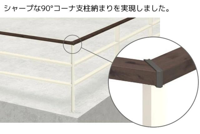 90度コーナー支柱納まりを実現。シンプルでシャープな印象を与えます。