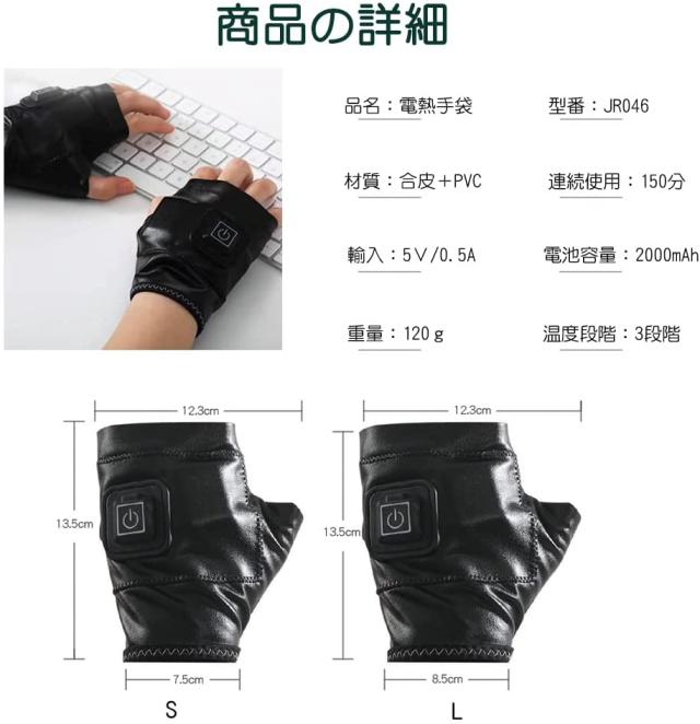 電熱手袋 薄手 電熱グローブ 指切り メンズ レディース USB充電式 速暖 3段階温度調節可 最大3時間連続保温 ヒーター手袋 温熱手袋 usb手袋