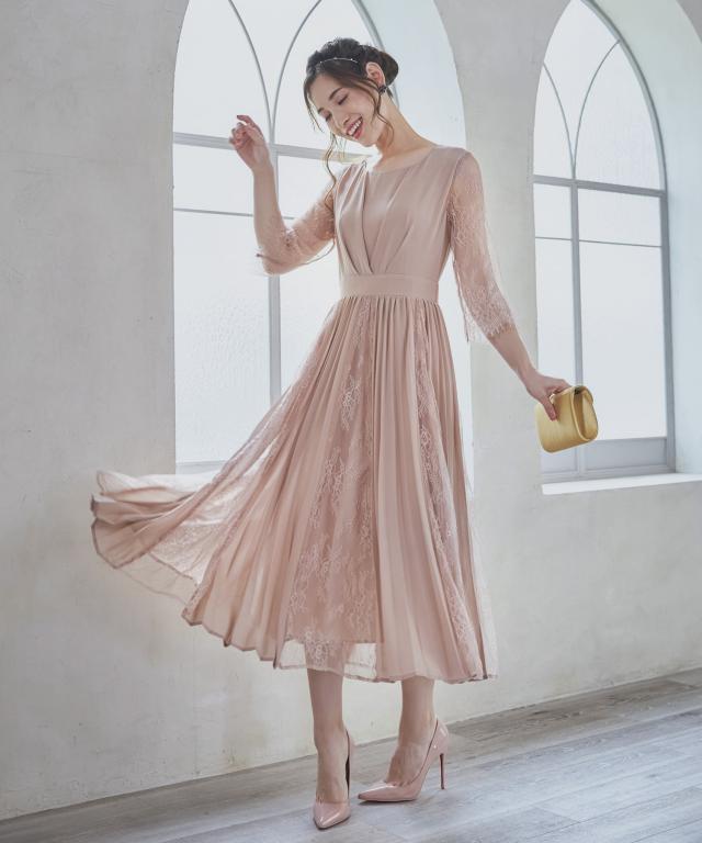 レースシフォンドッキングワンピース パーティードレス