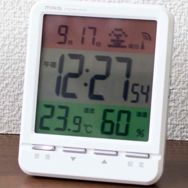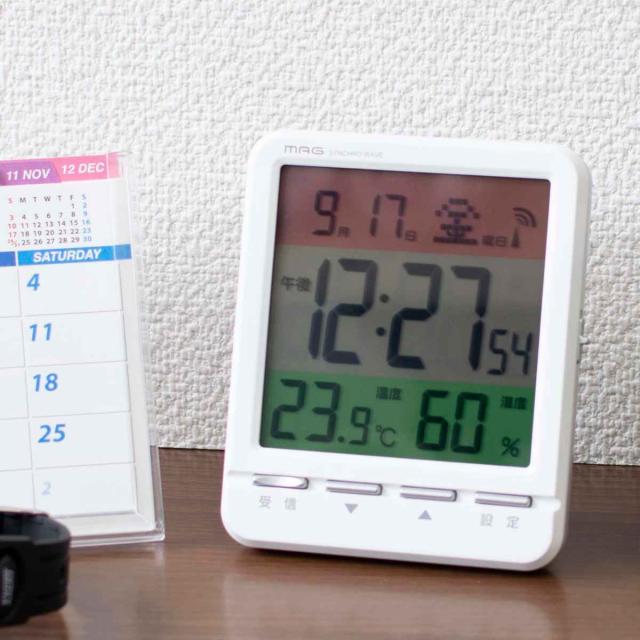 時計 MAG 電波 目覚まし スペクトル デジタル 電波時計 置き時計( 電波時計 目覚まし時計 デジタル時計 置き時計 置時計 とけい クロック コンパクト めざまし時計 アラームクロック 温湿度計 ライト シンプル 赤ちゃん 高齢者 室内環境 )