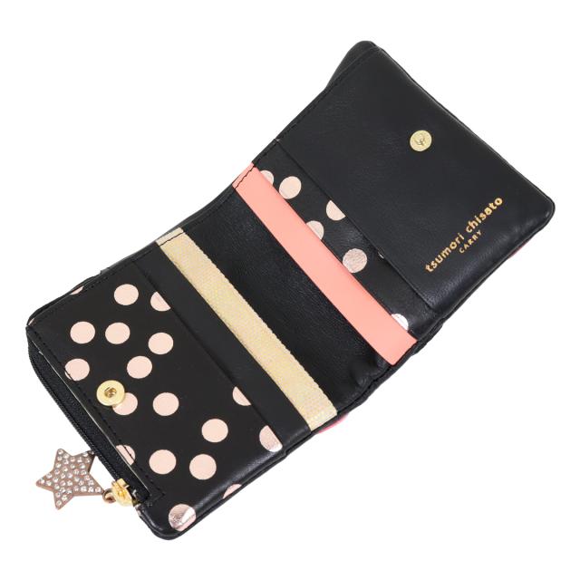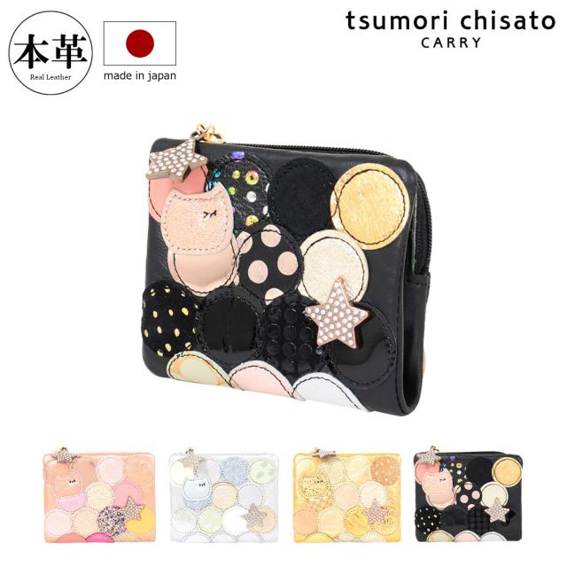 【レビュー投稿で+5%還元】ツモリチサト キャリー 二つ折り財布 本革 tsumori chisato CARRY マルチドット レディース 57095 日本製 ミニ財布 ミニウォレット レザー 猫 ラメ ストーン クリスマス_mp クリスマス_wp