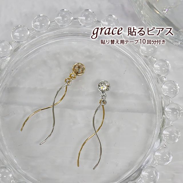 【grace貼るピアスとは?】専用テープで貼るだけ簡単ピアス! 穴が開いていなくても、金属アレルギーでも大丈夫。 痛みがなくおしゃれが楽しめます。grace貼るピアスのテープは安心の国内産医療用テープを採用しております。貼るピアスは専用テープがあれば繰り返しお使い頂けます。