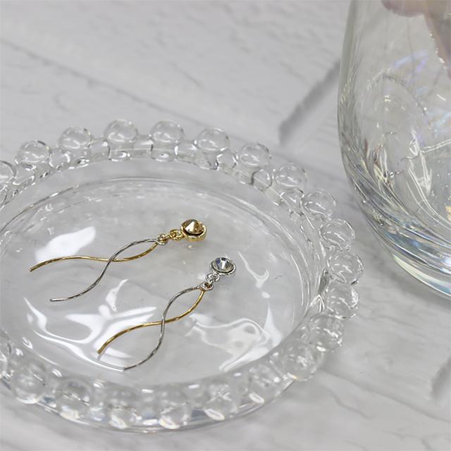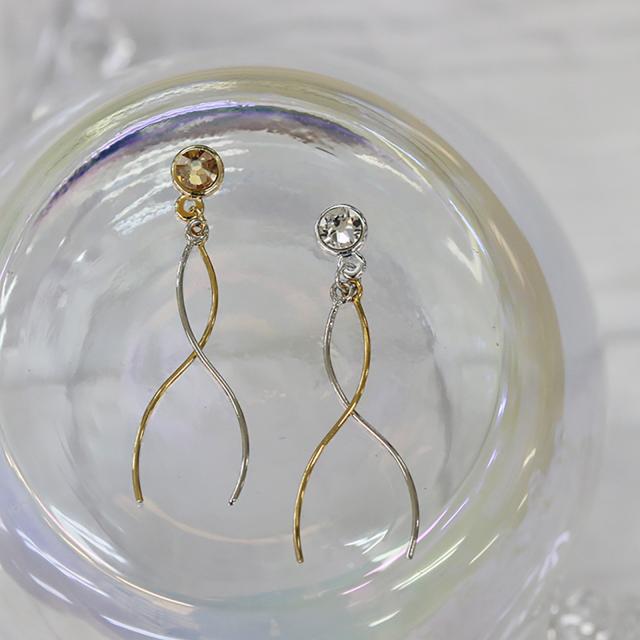 grace貼るピアス ダブルスティックウェーブ ゴールド シルバー 貼り替えテープ付き ノンホールピアス シールピアス スティック メタルパール 貼るだけ レディース イヤリング 痛くない おしゃれ クリスタルガラス デザイン シンプル 金属アレルギー