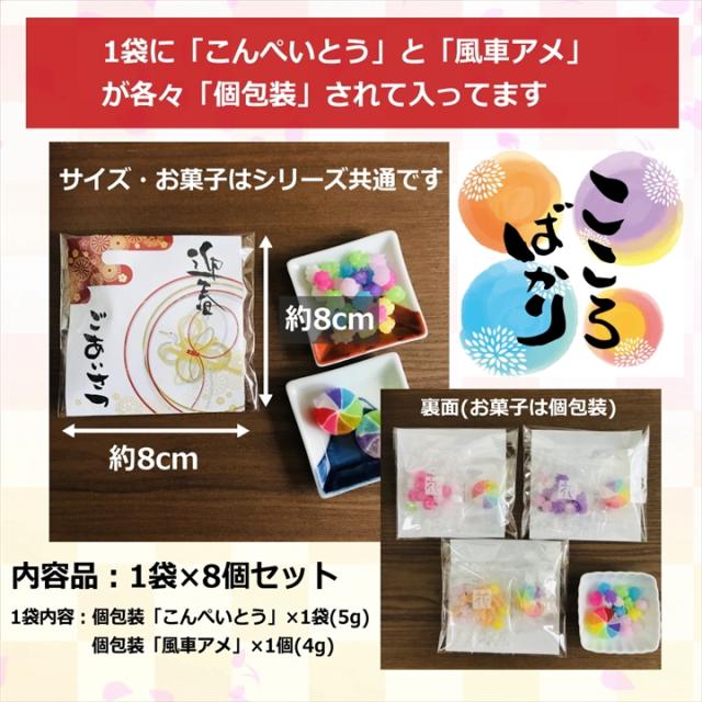 心ばかり 感謝 お菓子 こんぺいとう 飴 金平糖 8袋セット 個包装 小分け プチギフト こころばかり 新年会 受験生 お配り ありがとう お礼 お返し 産休 転勤 挨拶 大量 販促品 御年賀 会社 イベント 寒中見舞い 和風 駄菓子 引越 結婚式 内祝 粗品 ばらまき